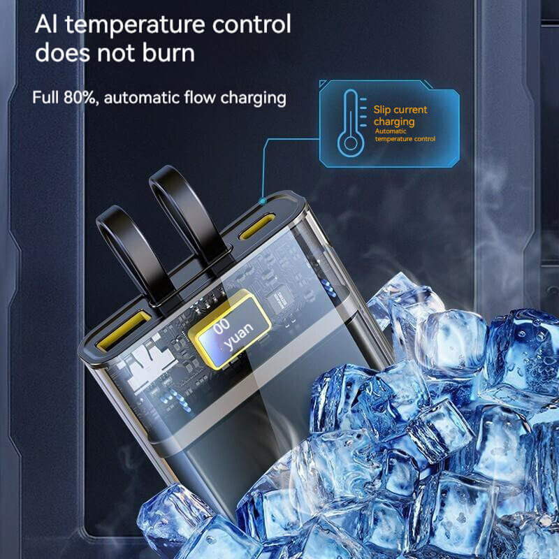 Portable Charger | External Battery Pack| 10000mAh | Digital Display | Support Quick Charging| Built-in Cables (Type C & Lightning) | Charging 4 devices at the same time | Universal Compatibility | AI Temperature Control