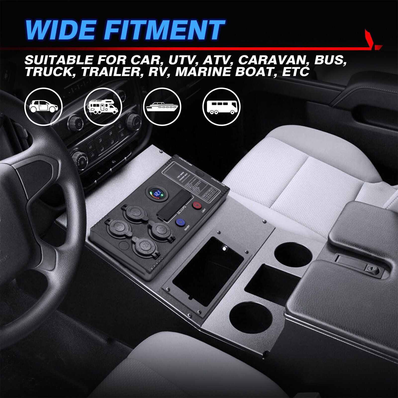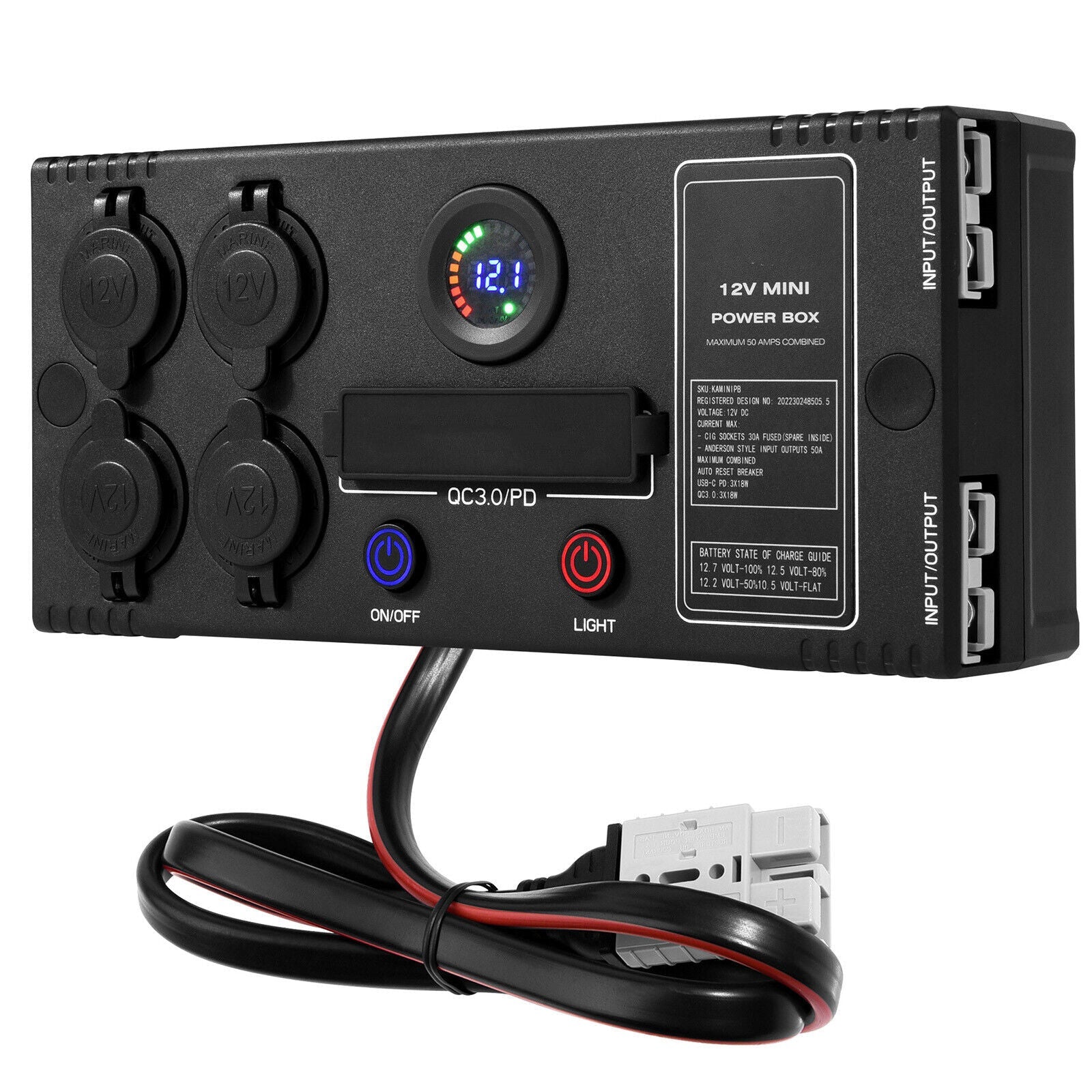 Power Control Box with Digital Voltmeter QC3.0 PD Port Cigarette Lighter Socket for RV Car Boat Vehicle Truck Yacht