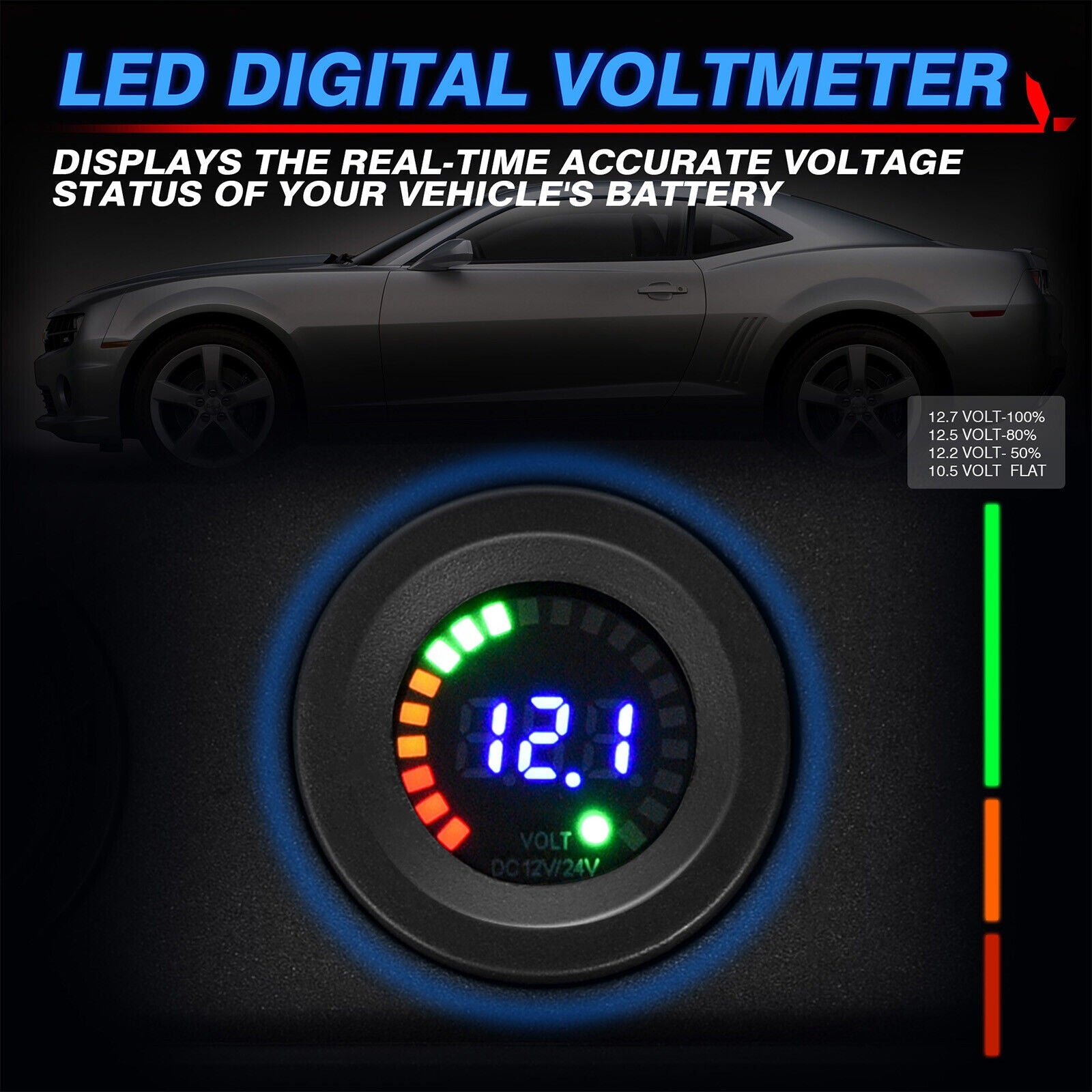 2. Real Time LED Voltmeter - The LED voltmeter displays the real-time accurate voltage status of your vehicle's battery, let you know whether the voltage is at a normal level, ensure driving safety