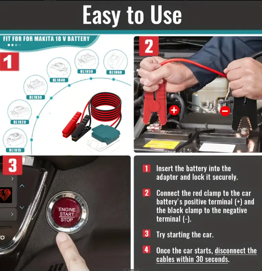 18V Car Jump Start with 180cm Cable | Compatible with Makita 18V Lithium Batteries, Red & Black Wires, Copper Terminals & Portable Start/Stop Switch for Cars, Trucks, Motorcycles - Automotive Starting System, Vehicle Starting System, Compact Design, Durable Construction, Without Battery