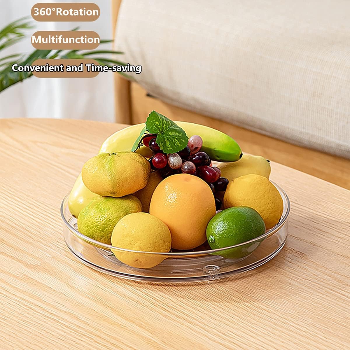 With stainless steel ball bearings in the bottom tray, the cabinet organizer can smoothly rotate 360° with no bumps or stops, making items easy to reach even stored on upper shelves. The visible clear and circular design kitchen storage bins make it easy to see what each organizer contains without fumbling or rummaging all around.