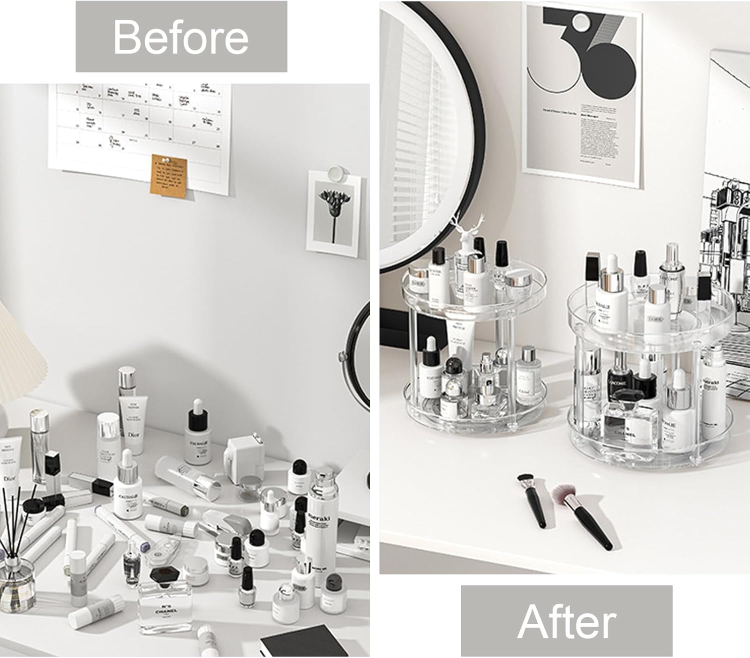 Package includes: 1x 2 Tier Lazy Susan Turntable Organizer