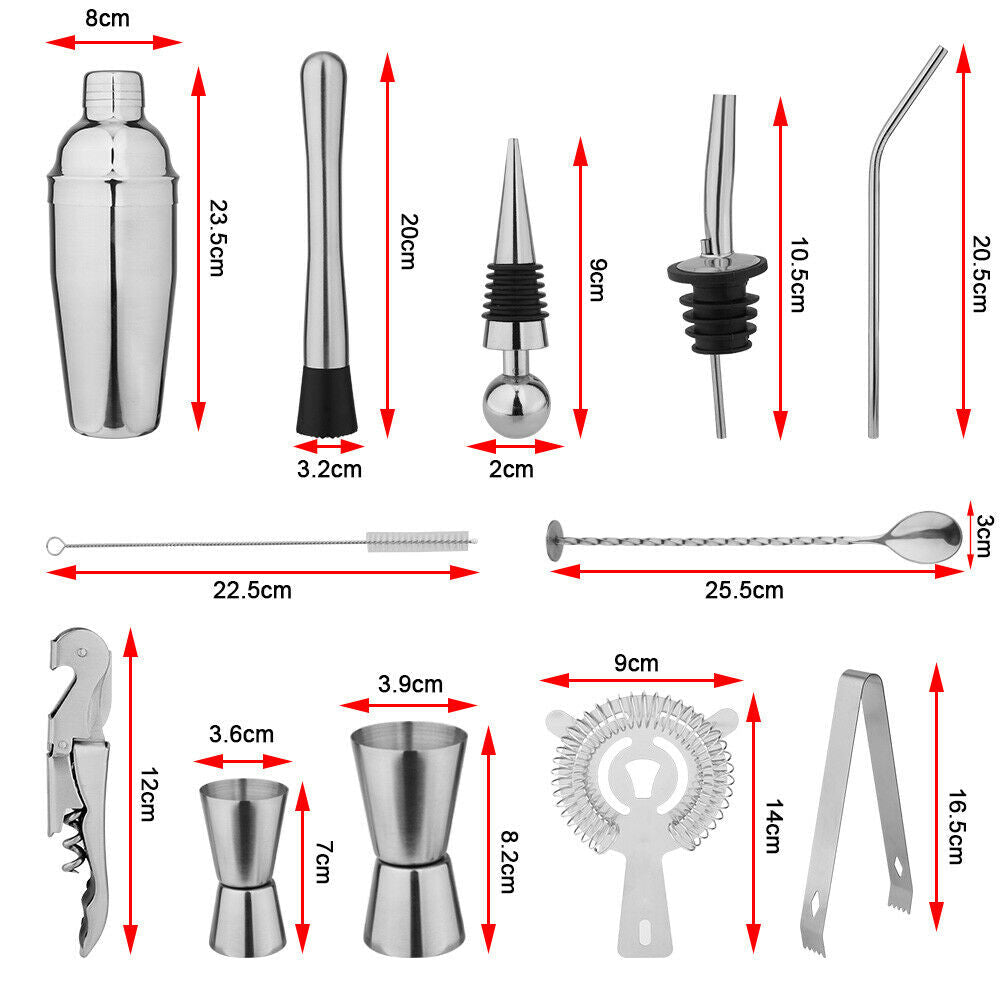 This is a set of fine quality Cocktail Shaker Set, with 20 pcs different tool, all tools are made of stainless steel material, tools crafted cocktail bar set as used by the pro cocktail mixers, prevents from absorption and discoloration, with fine durability. Cocktail Shaker Set An perfect gift for both starter and professional mixers alike, as all essential tools are included.