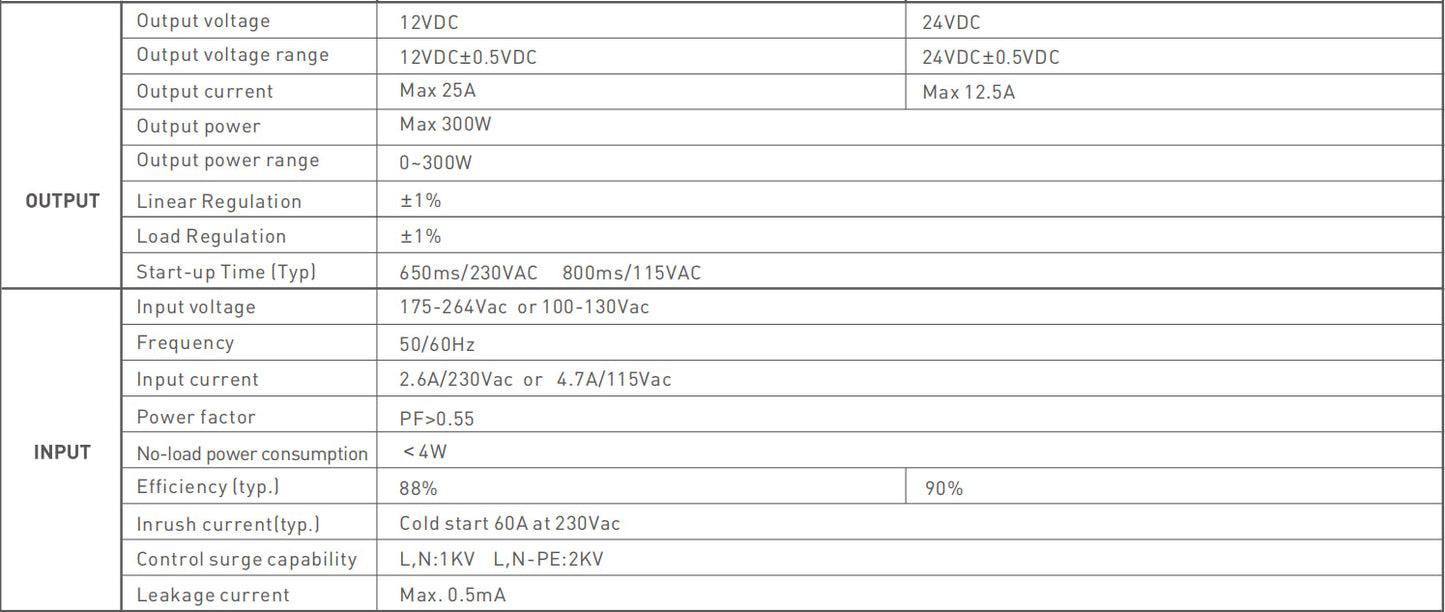 Hold Up Time(Typ): 12ms/230VAC 10ms/115VAC