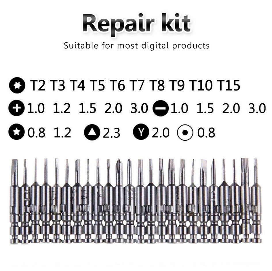 - Full set of 24 batch head,complete specifications,can be adapted to work in many different fields.Suitable for most digital products,various types of computer,mobile phone,camera,glasses,watches.