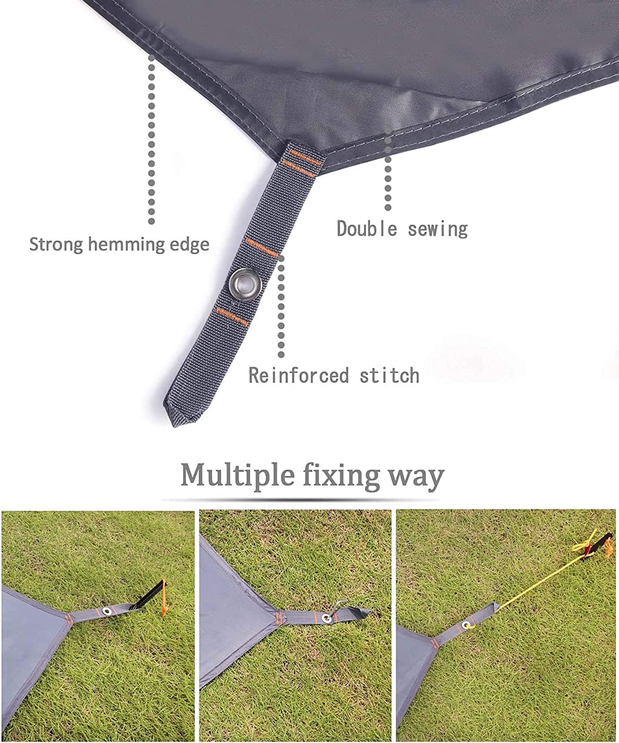 MULTIPURPOSE TENT TARP FOR UNDER TENT: The outdoor tent footprint is ideal for a tent, the beach, picnics, camping or sporting events. It can also be tied to provide a sun or rain canopy; This is a a must-have for any outdoor activities.