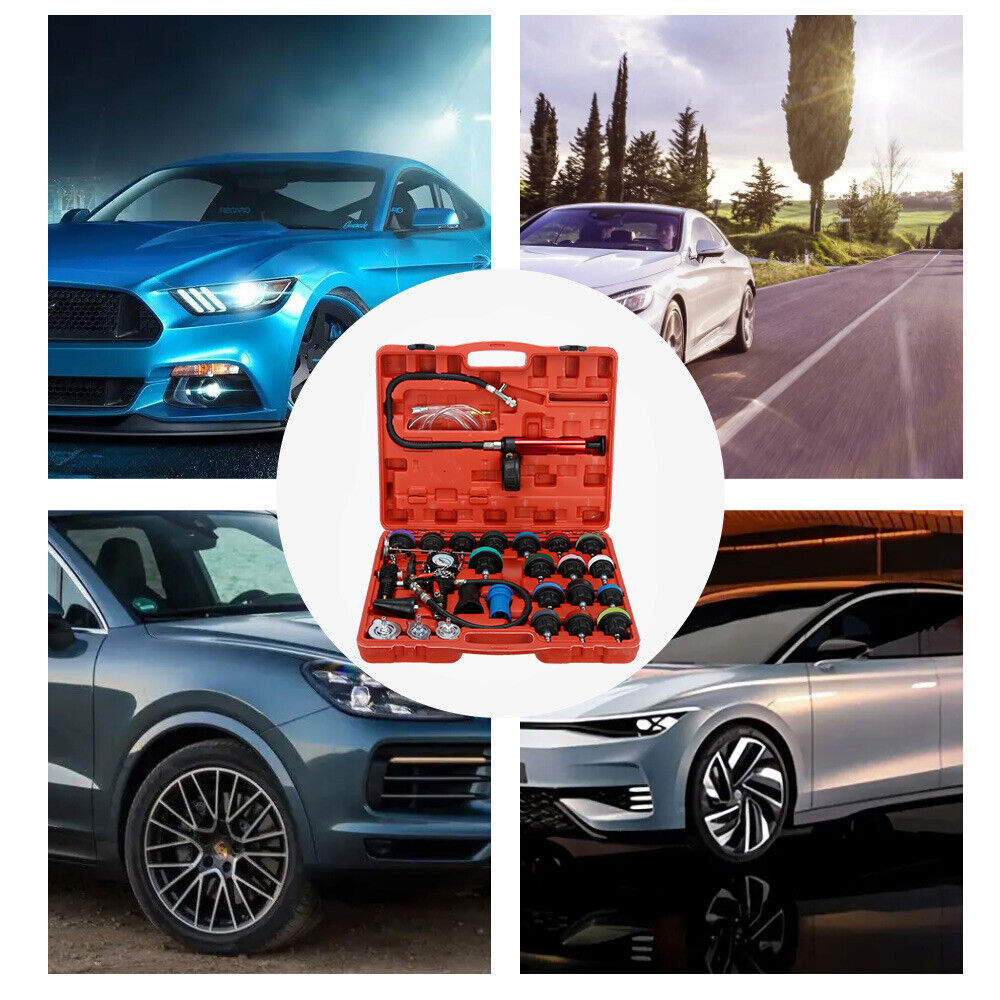28-Piece Radiator Pressure Tester Kit Car Cooling System Leaking Refill Vacuum