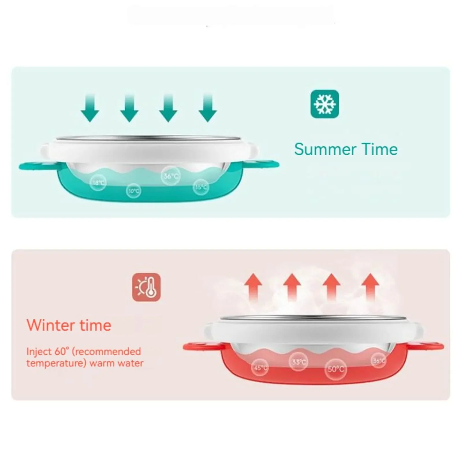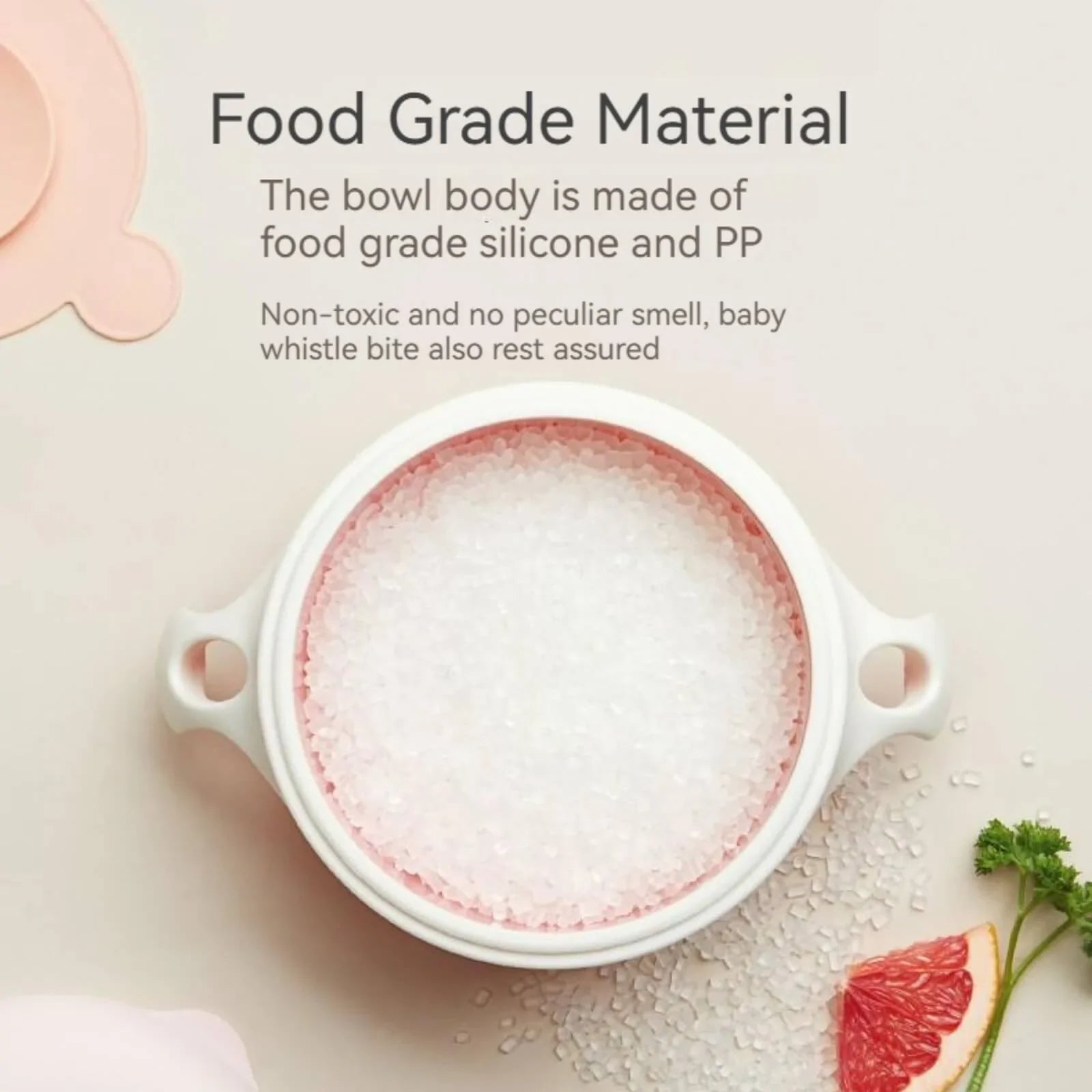 4 Pieces Set: Lid, Stainless steel bowl & handle, Water injection layer, Silicone suction cup