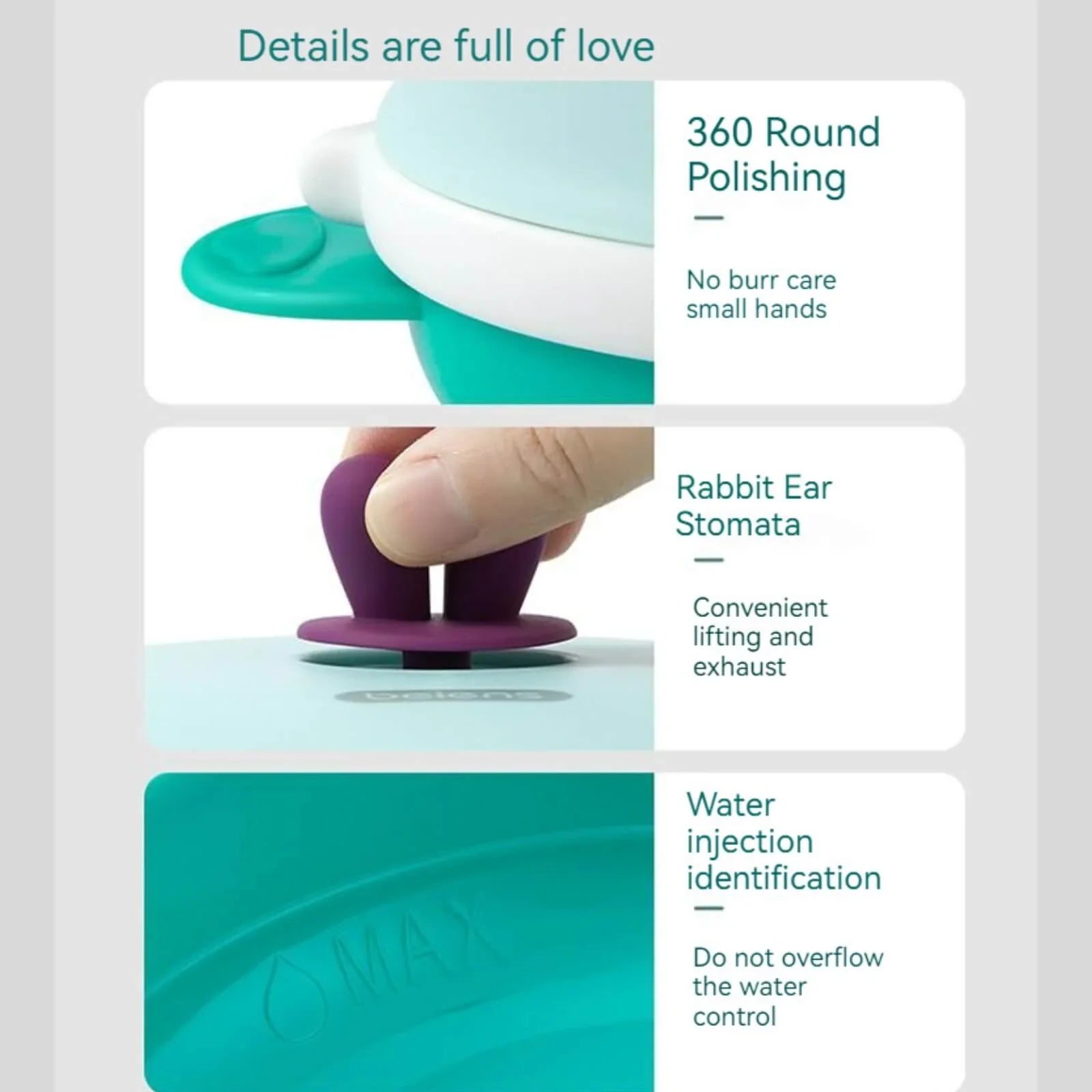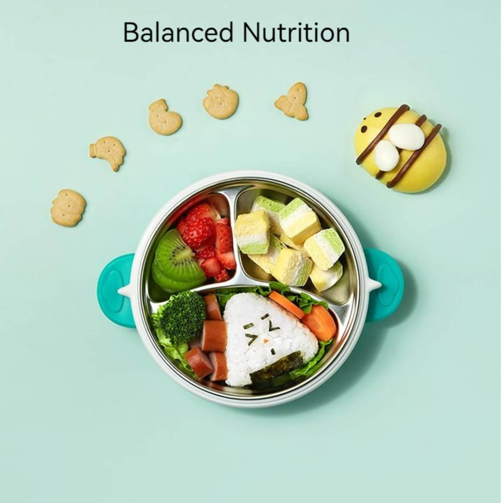 3 Grids Thermal Stainless Steel Baby Toddler Suction Plate /Bowl Set-Green
