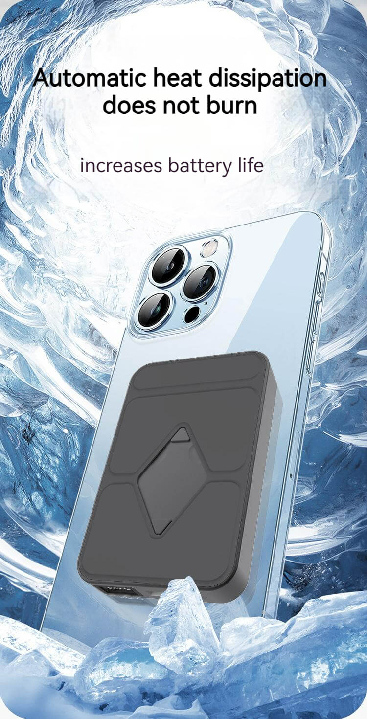 Magnetic Adsorption | Mini Size | Fast Wireless Charging | Portable Charger | External Battery Pack | 5000mAh | Digital Display | Built-in Adjustable Stand | AI Temperature Control