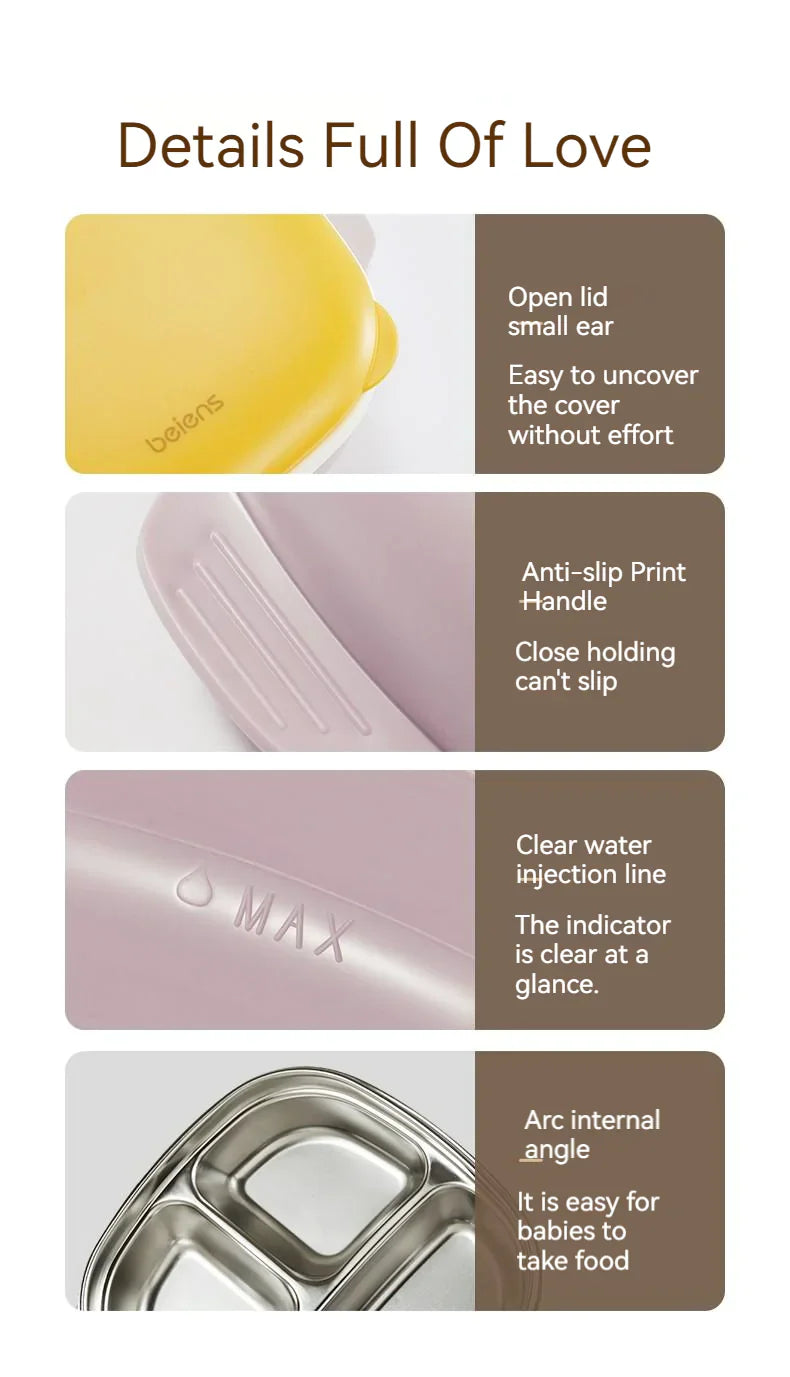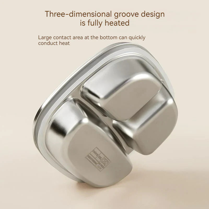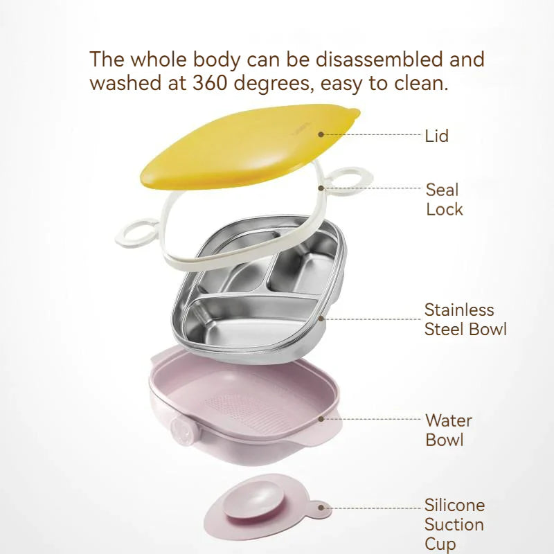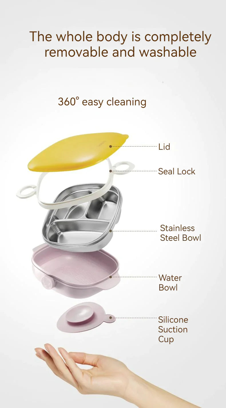 5 Pieces Set: Lid, Seal lock, Stainless steel bowl, Water injection layer, Silicone suction cup