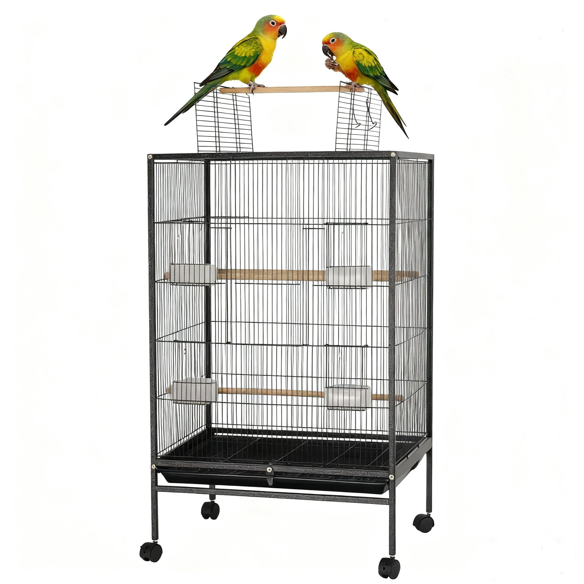 Solid construction: Our large bird cage is crafted out of premium metal covered with harmless hammertone paint. 2mm/ 0.08’’ thick metal wires can withstand your naughty pets’ bites. Excellent water resistance make this parrot cage a durable and safe pet cage with high quality.
