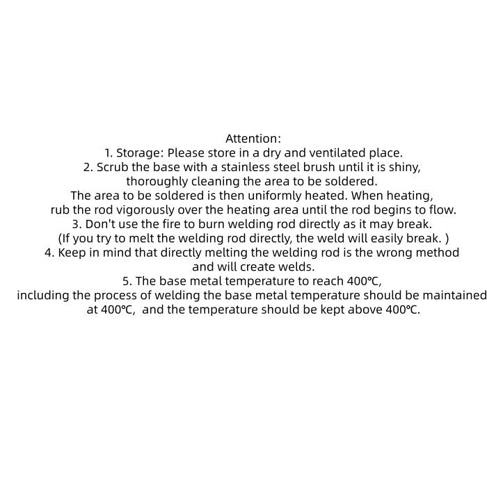 - No Need Solder Powder. You don't have to use other flux powder with aluminum alloy as the welding core and coating as the salt base. Very convenient and easy to weld.