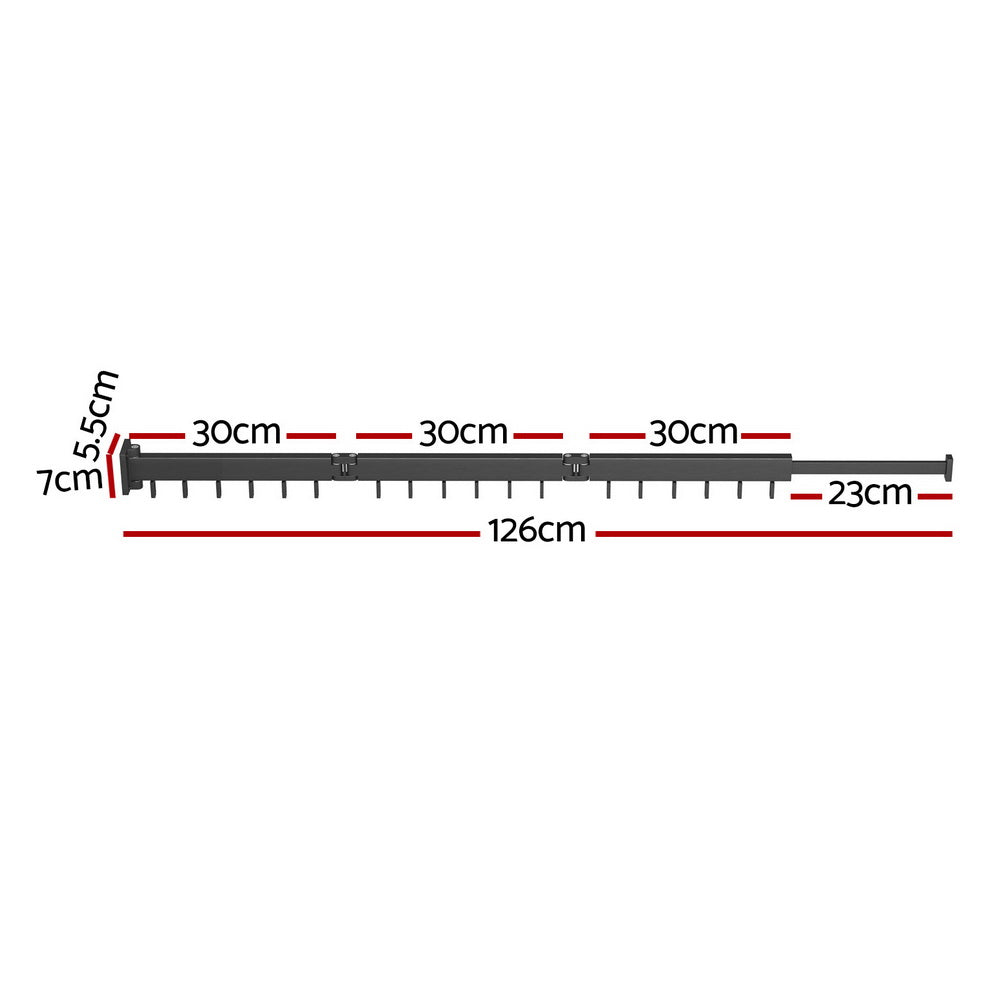 Experience the versatility of the Artiss Tri-folding Clothing Rack, engineered for efficient space utilization with its wall-mounted design. This rack offers flexible 360° rotation, ensuring effortless access to clothes from every angle. It includes 18pcs swivel O-Ring hooks for organizing accessories and garments neatly. The extendable tube adjusts to suit your storage requirements while maintaining stability. Simple to install, this rack combines practicality with a sleek, modern design, ideal for maximizing space and organization in your home.