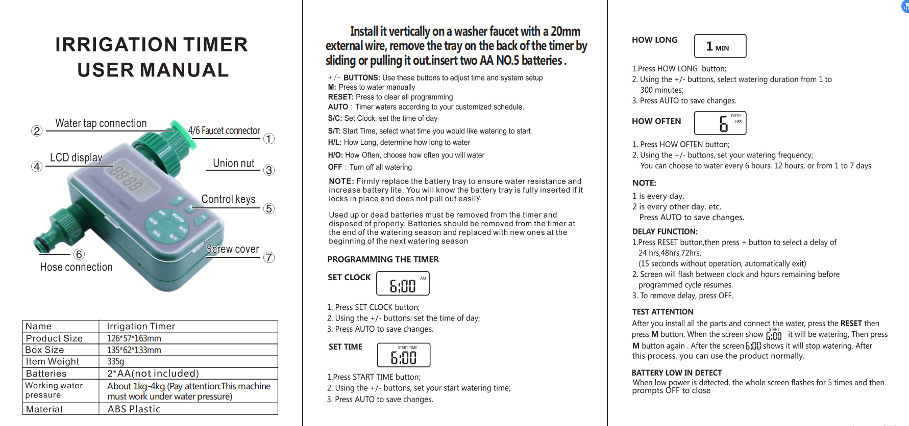 8.HOW OFTEN :Choose how often you will water(6-12hours,1-7day)