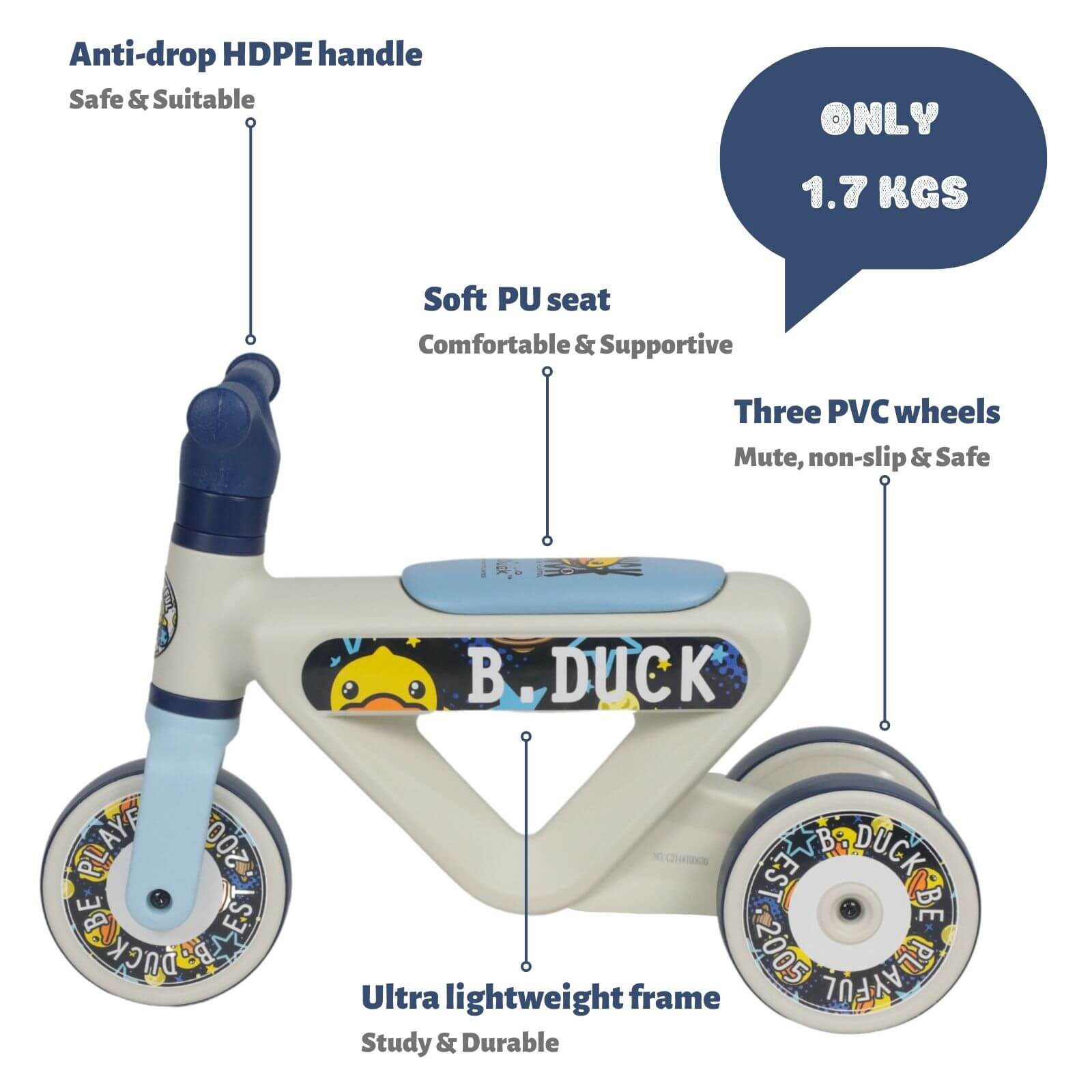 Luddy 1005S Blue is a safe toddler starter balance bike with 3 wheels for babies aged 18-36 months who are learning to walk or developing their balance.