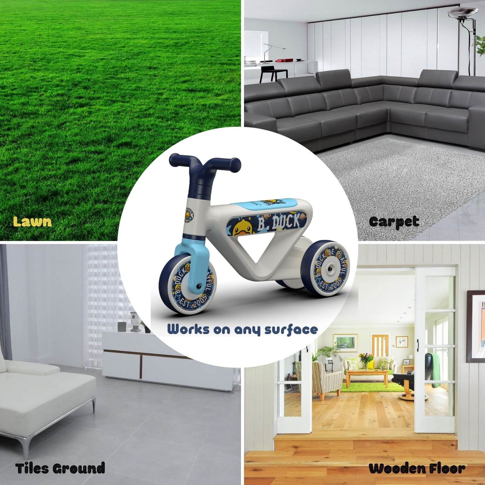 It is designed to be lightweight so it can be easily ridden and be used on any surface, whether indoors or outdoors.