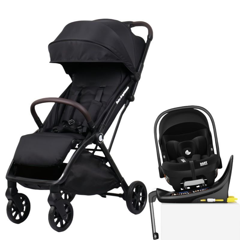 The Baby Brightness FlexGo Pram and capsule set is built for safety and ease. It includes a stroller, i-Size infant capsule, Rotating ISOFIX base, and handy accessories.
