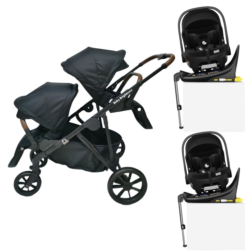 Double Pram – Luxe Twin Stroller with Double Car Seats and Rotating ISOFIX Bases