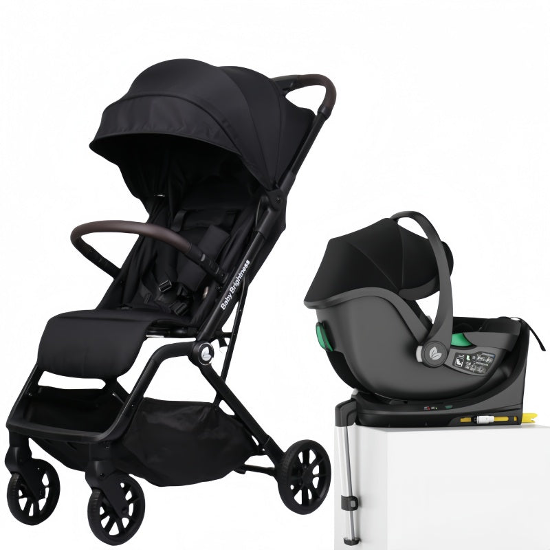 The Baby Brightness SwiftGo Pram and capsule set is built for safety and ease. It includes a stroller, i-Size infant capsule, ISOFIX base, and handy accessories.