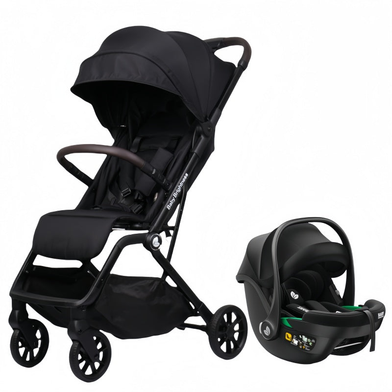 The Baby Brightness SwiftGo Pram and capsule set is built for safety and ease. It includes a stroller, i-Size infant capsule, and handy accessories.
