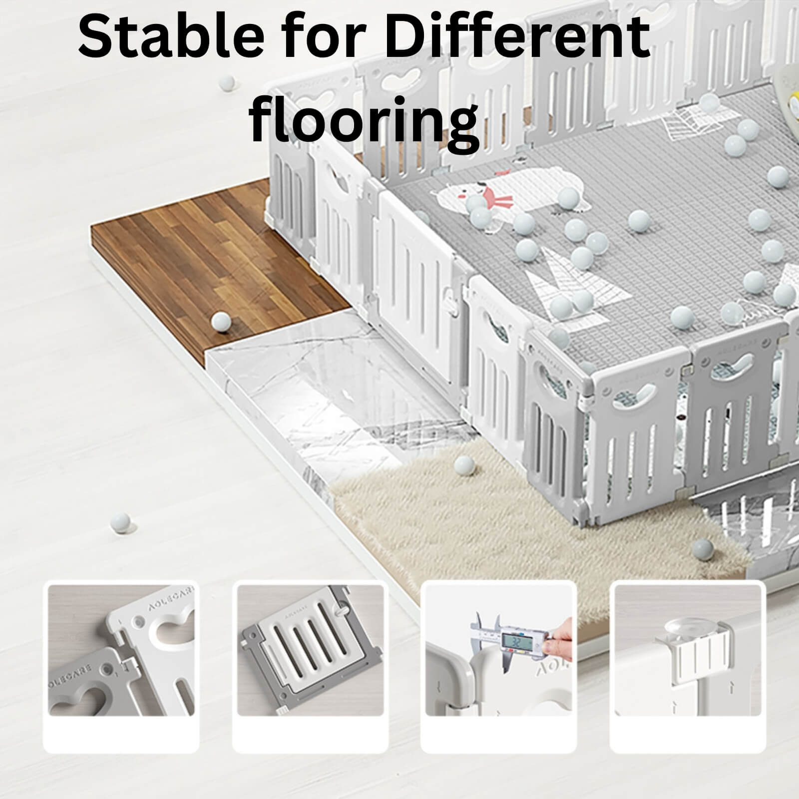Our high-quality brand new 20-Panel (18+2) Baby Playpen is made of non-toxic plastic and designed with narrow gaps which creates a safe play area for your little ones.