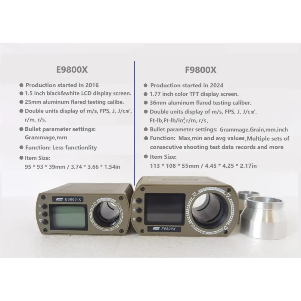 The instrument adopts a 1.77-inch color TFT display screen, a 36mm shooting tube matched with an aluminum alloy expansion funnel shaped inlet, which can be directly inserted into a 38mm outer diameter muffler for shooting speed measurement.