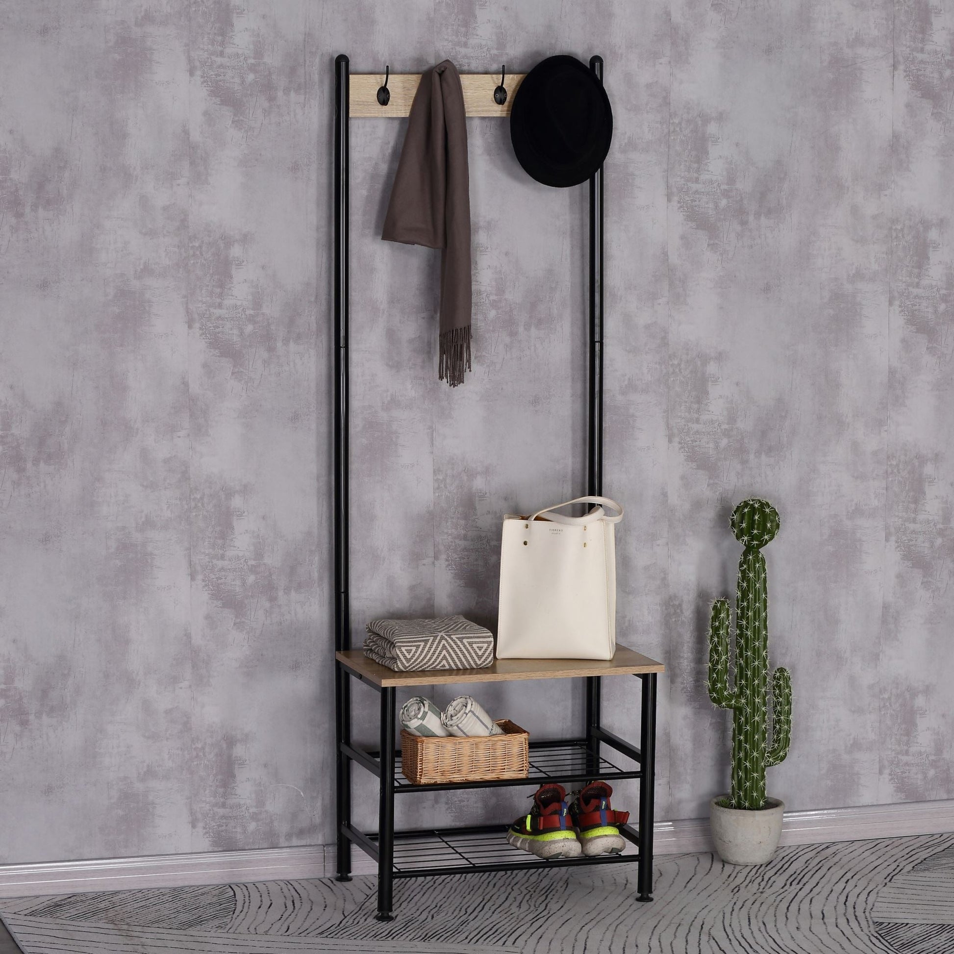 Coat Rack with Shoe Bench