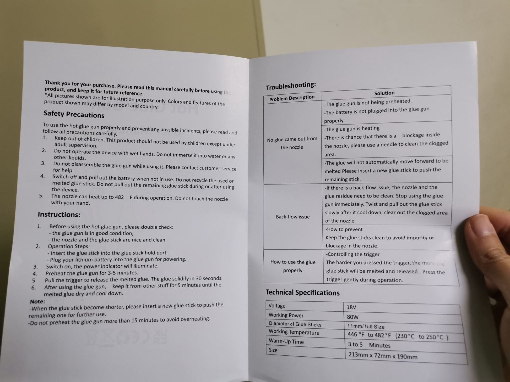 1x Lithium Hot Mel t Glue Gun (Battery is not included)