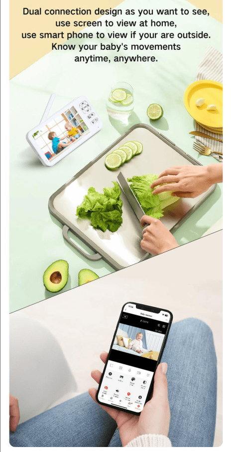 Dual Mode 5″ Baby Monitor with Night Vision & Motion Detection – Yellow