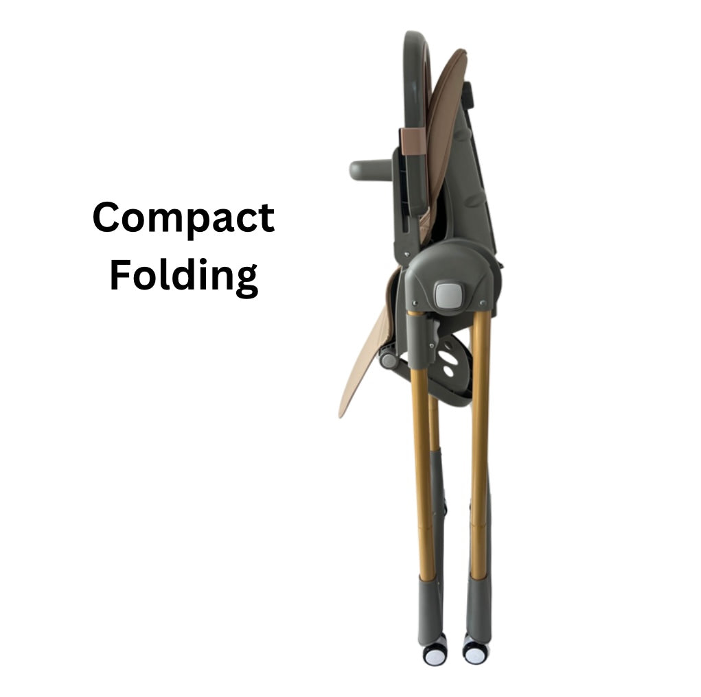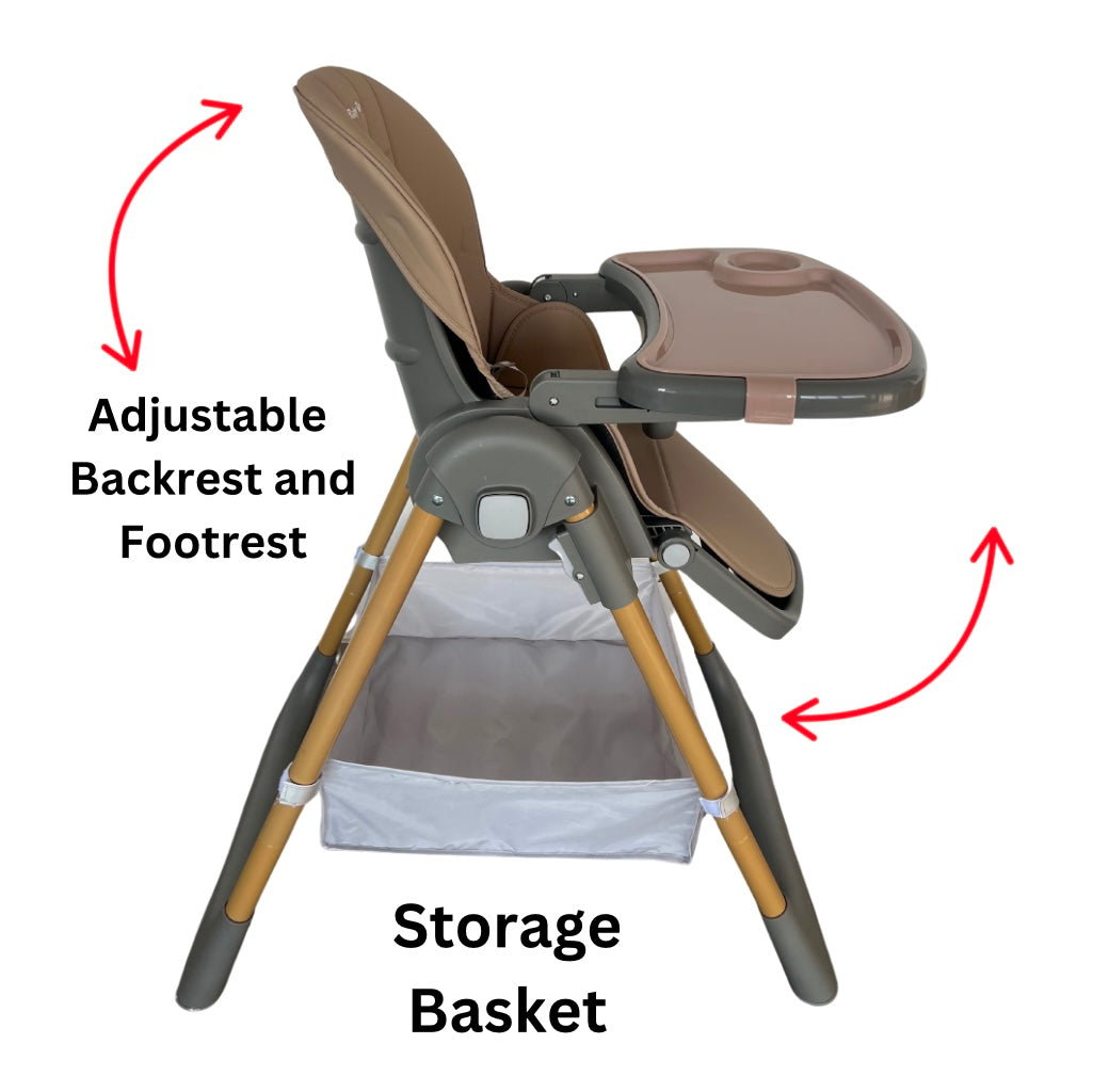 Elevate Adjustable and Folding High Chair with Locking Wheels and Storage Basket - BROWN