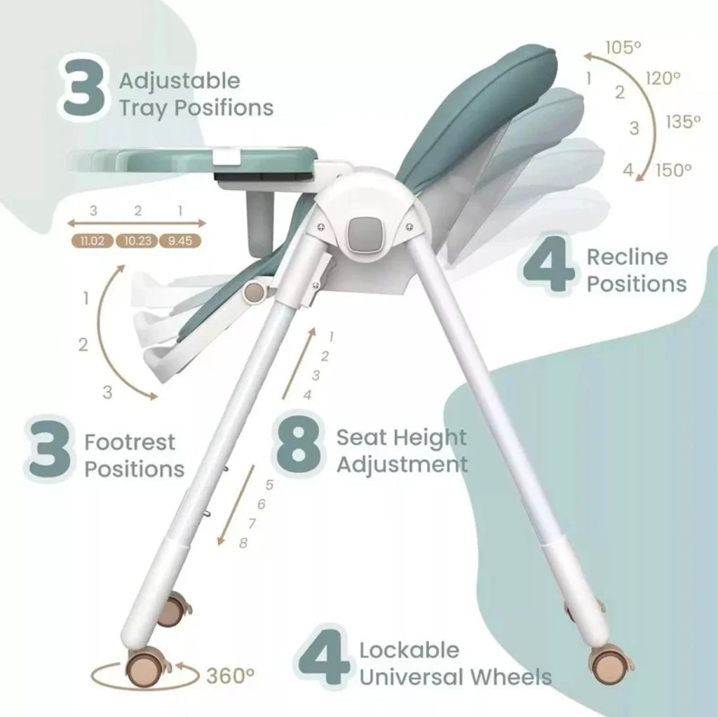 Designed for flexibility, convenience, and safety, the Elevate High Chair provides a customisable seating experience that adapts to your child’s needs. Its adjustable features, lockable wheels, anti-fall crotch bar, and foldable design make it an excellent choice for modern families who value both practicality and style.