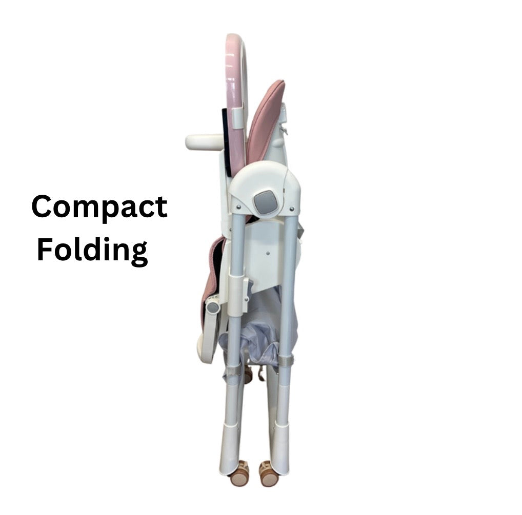 Elevate Adjustable and Folding High Chair with Locking Wheels & Storage Basket - PINK