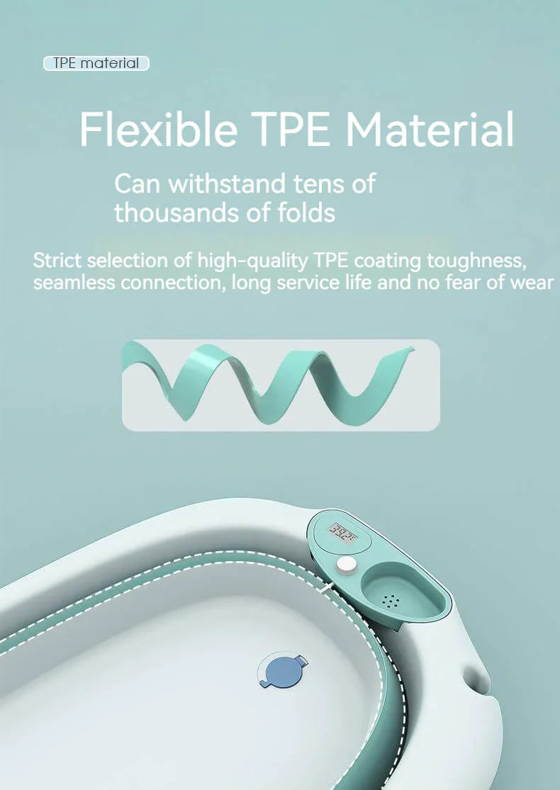 Foldable Bath Tub for Newborn, Baby & Kids With Thermometer-Grey