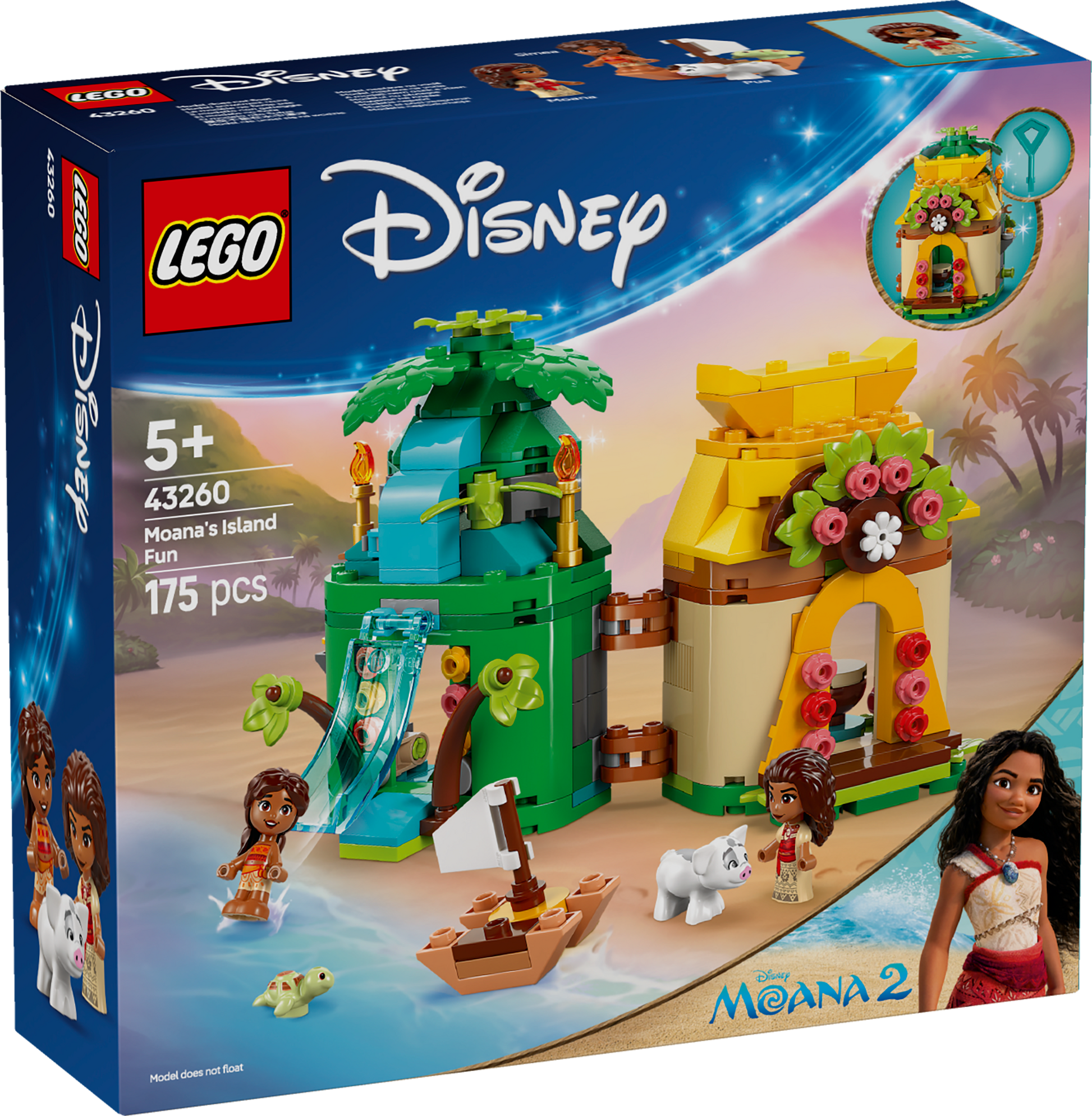 - Building kit micro-world – The buildable toy features a double-sided island/house model with a key, Moana and little sis Simea LEGO® ǀ Disney micro-doll figures and a Pua LEGO ǀ Disney animal figure