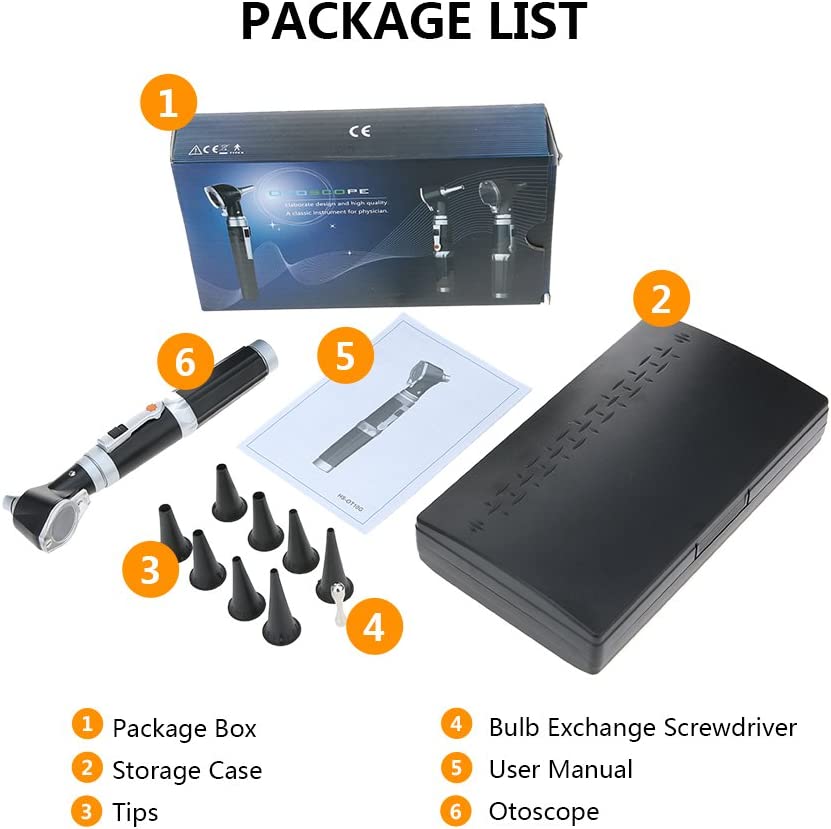 Adjustable 3X Magnifier: Offer you wider vision with 3X magnifying glass, the magnification glass is adjustable. Otoscope is design to view the ear wax, infections, tympanic membrane, external ear canal to diagnose outer and middle ear pathologies.