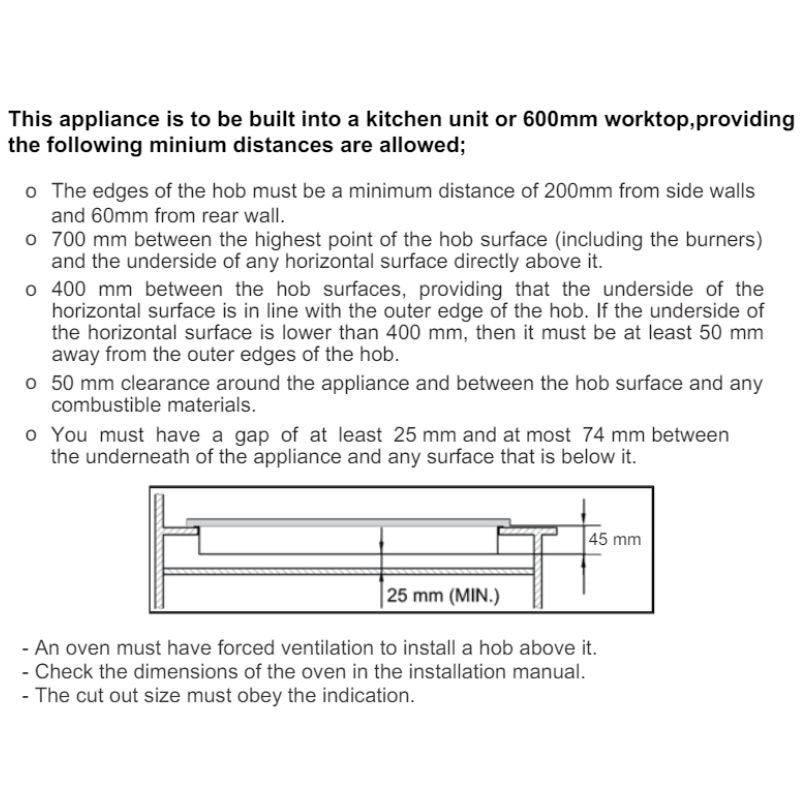 NOTE: This hob must be installed by a certified gas fitter & tester.
