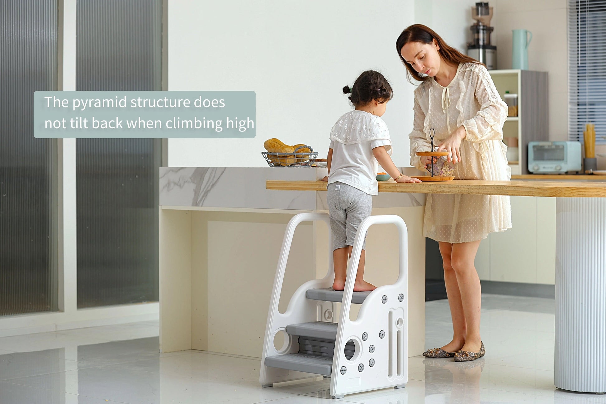 - Safe and Stable: Smooth edges, wide base, non-slip steps, and high handrails for added security