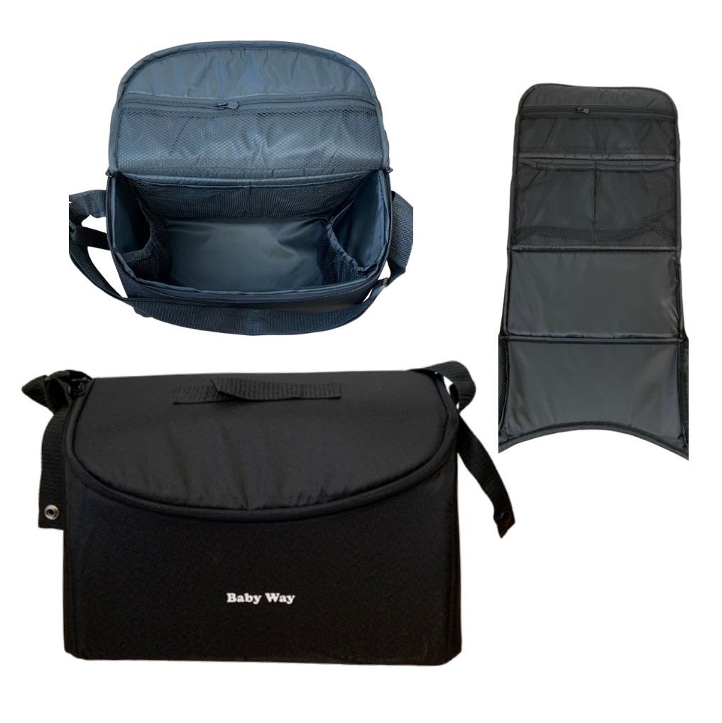 Multifunctional Nappy Bag – Universal Stroller Caddy & Portable Changing Mat - BLACK