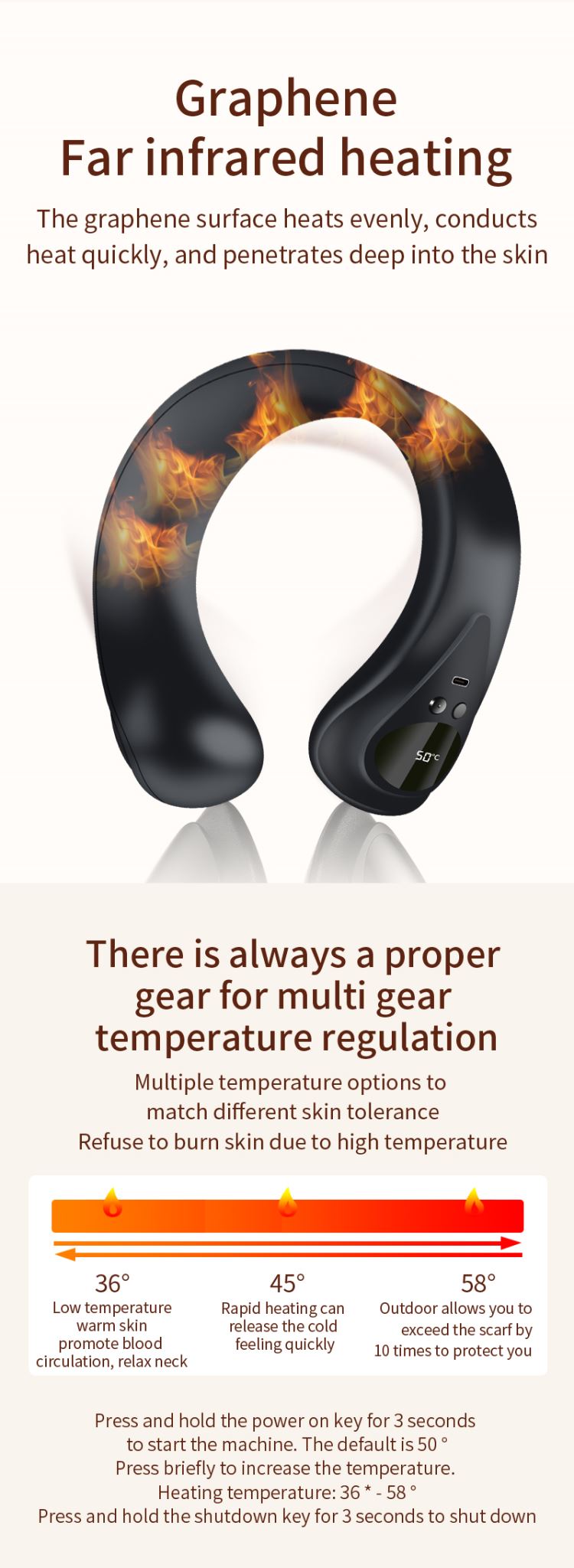 Perfect Gift in Winter The portable neck warmer will be a great gift whatever cold winter, Christmas, birthday, festival, anniversary, celebration, and others. Your family, lover, friends will be happy when they receive it. Tips: To prevent burns, please read our instructions carefully before use. Since some customers have sensitive neck skin, please use it from the lowest level temperature for the first use. If you feel any discomfort during use, please stop using it immediately.