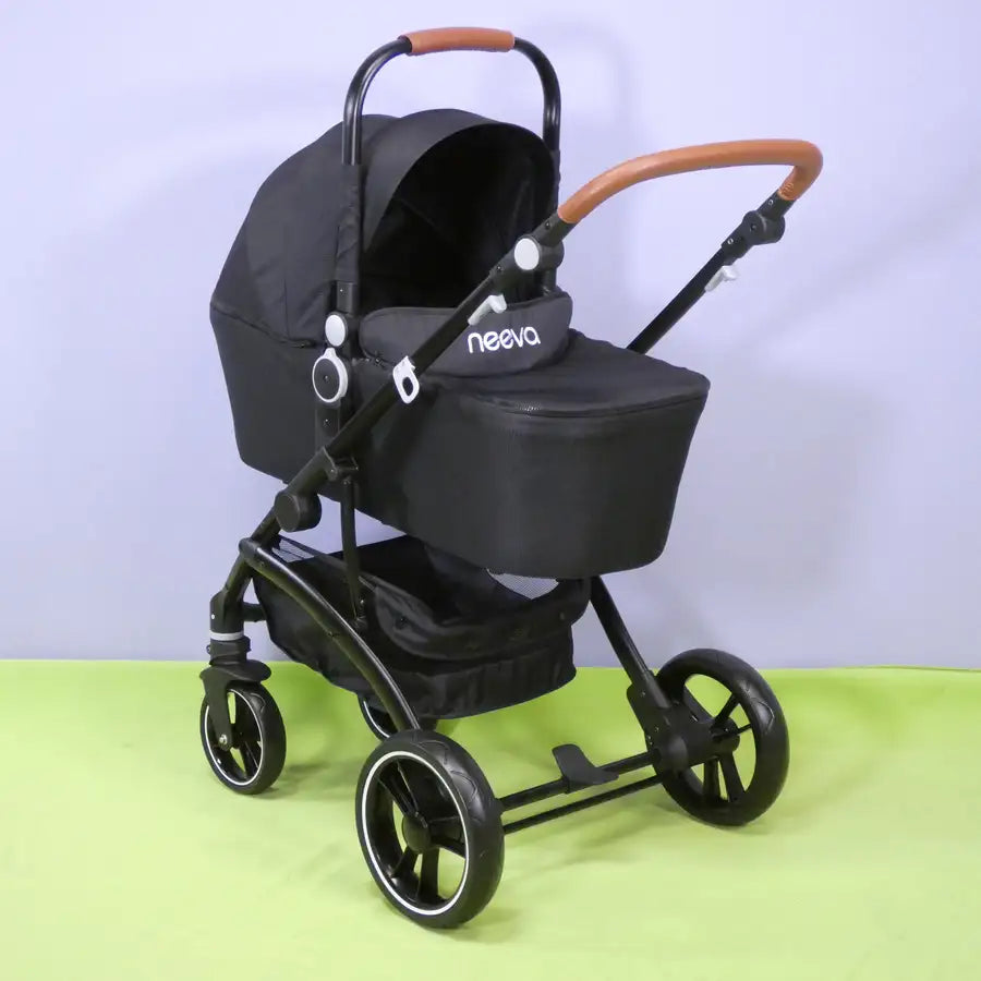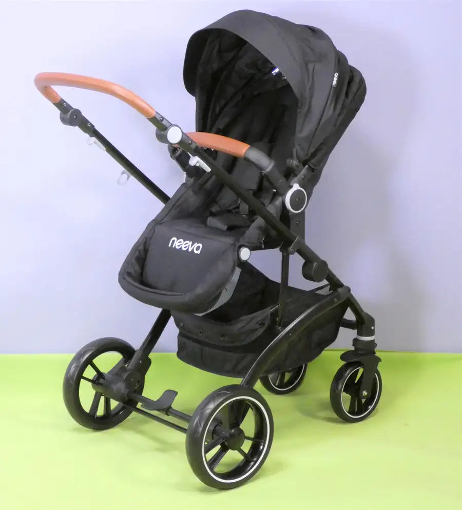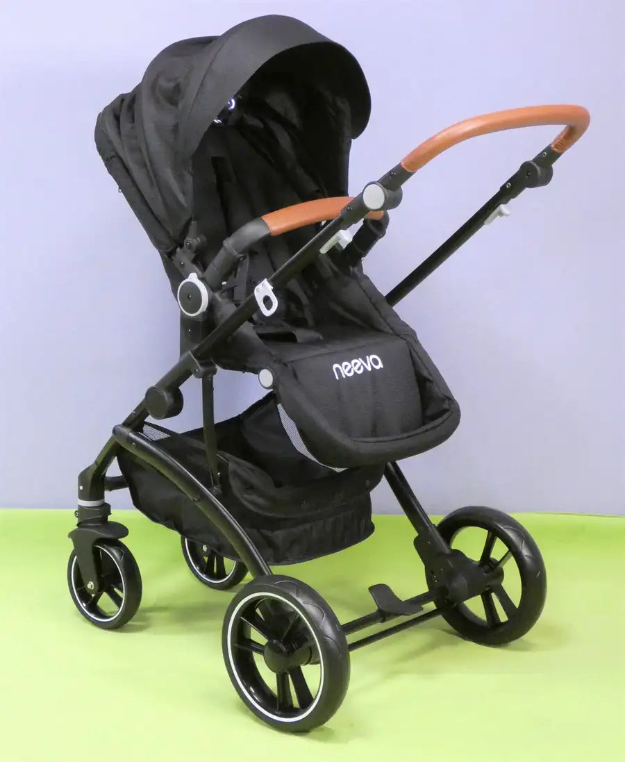 Neeva Carina 4-Wheel Stroller - New Black comes in a new high-grade black fabric.