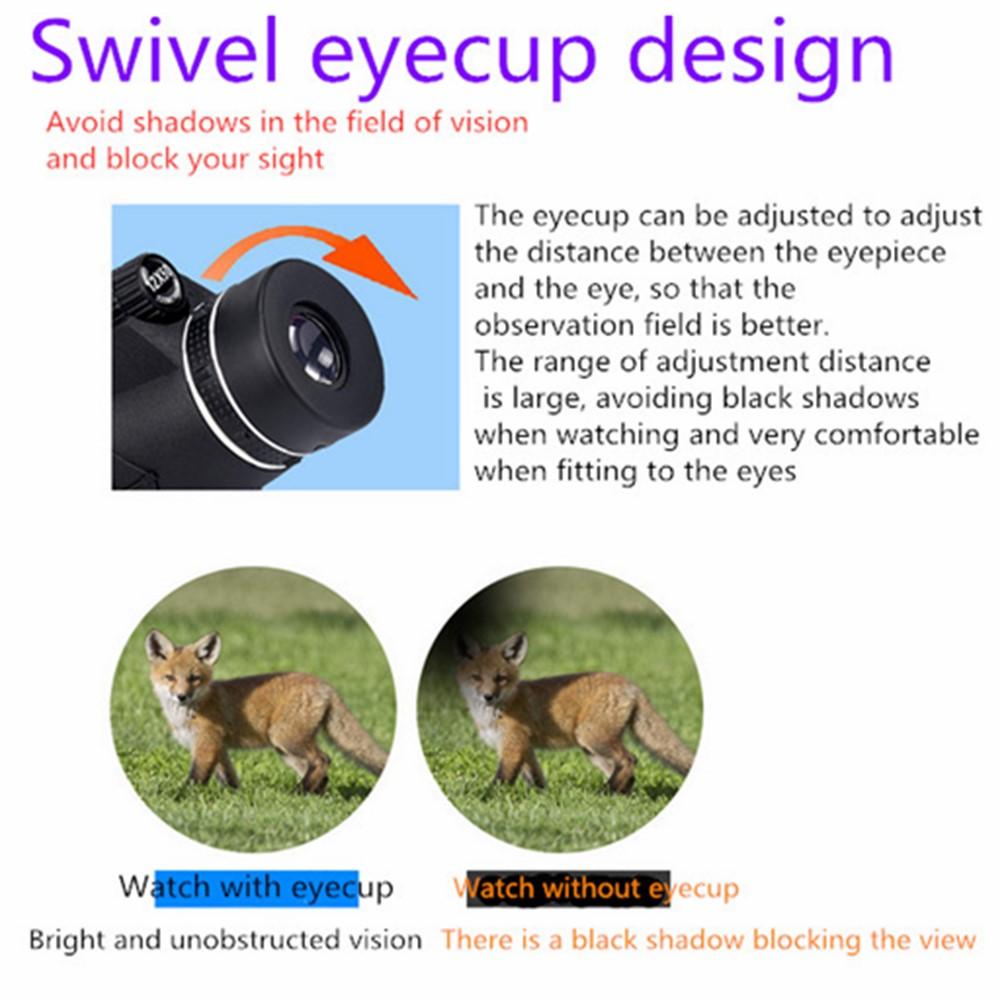 50 x 60mm HD monocular: 50X magnification factor. clearer images, objective lens has brighter image with the help of great light-collecting power.