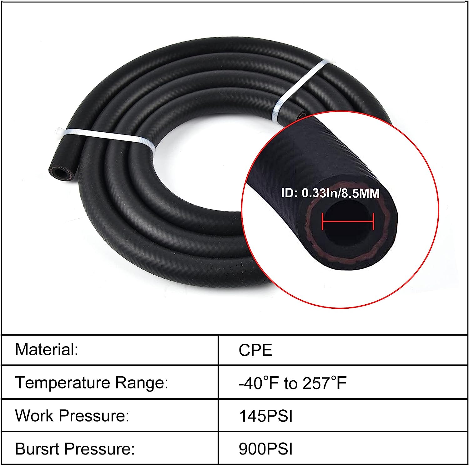 Hose working pressure: 145psi, bursting pressure:900psi, working temperature: -40℉ to 257℉.