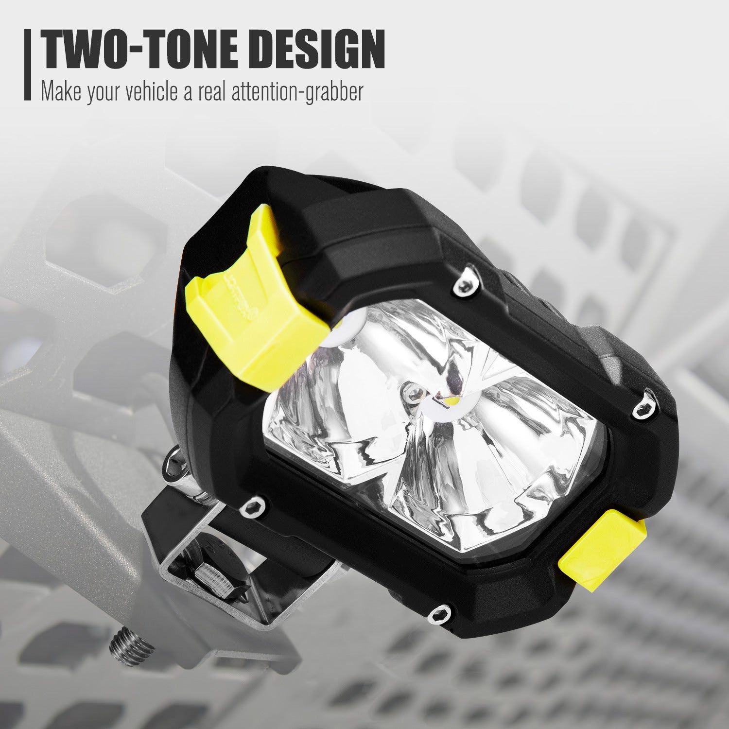 Sometimes, standard factory headlights just don't cut it when it comes to seeing at night in off-road conditions. When the terrain is challenging, it is important you have enough illumination to see well in front of you. With OSRAM’s® finest OSLON® LED chips delivering an immediate performance increase of 50% or more, these Lightfox 4 inch light pods provide 4,600LM (pair) spot beam at 15° staggering 1Lux@393m (pair). Engineered with 5,500K CCT, these 4 inch light pods feature still crisp white light but a little bit warmer & easier on your eyes. Featuring powder coated die-cast aluminum housing & PC lens cover, these LED light bars are not only UV, impact and corrosion resistant, but also moisture free with the IP68 rating for consistent performance on foggy and stormy days. These LED pods come with DT plugs for super easy installation on bumpers, A pillars or roof racks. With the impeccable two-tone design, the 4 inch light pods are sure to make your vehicle a real attention-grabber