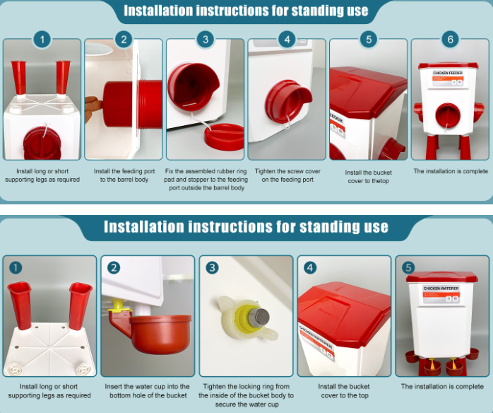 WIDE RANGE OF APPLICATIONS: Our chicken automatic waterer provides a constant supply of fresh water, made with eco-friendly PP material for safe drinking. The 11L chicken waterer and 12kg feeder cups accommodate various birds, from chickens to ducks, geese, quails, turkeys, and pigeons. Installation is easy.
