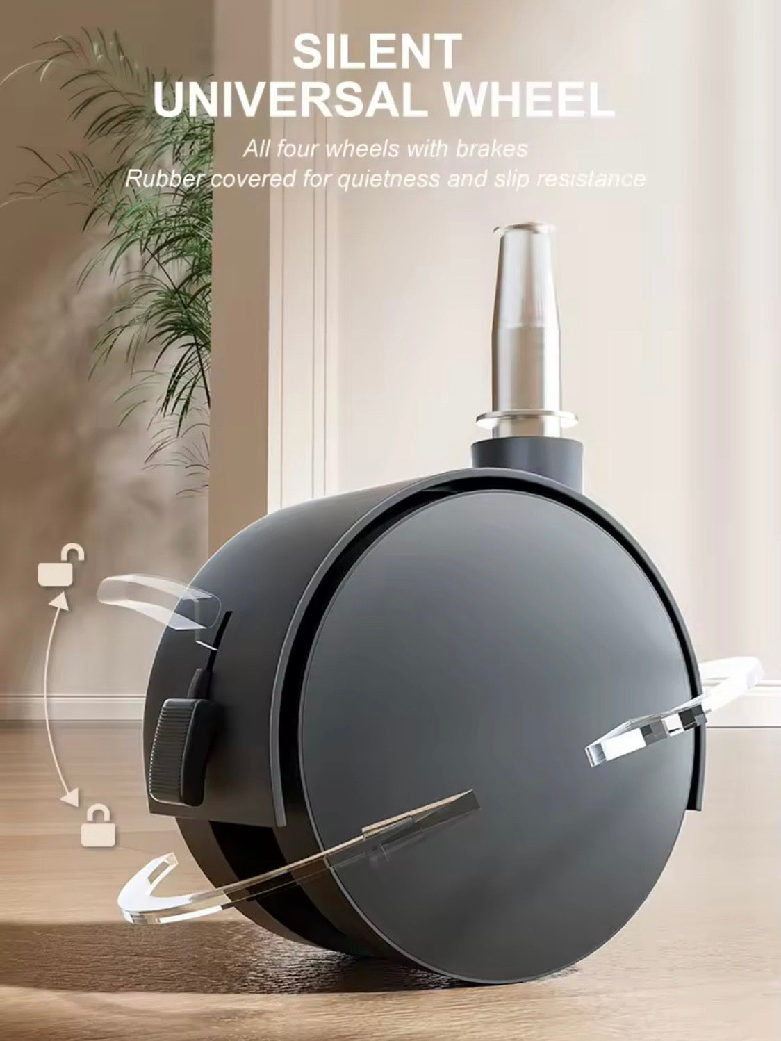 - Silent Universal Wheels – Four lockable wheels with rubber coating ensure smooth, quiet, slip-resistant movement.