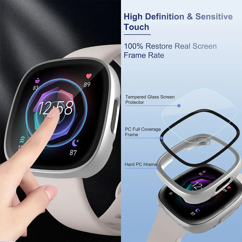 Give your Fitbit Versa 4 the ultimate protection with this Hard PC Bumper Case featuring built-in HD tempered glass screen protection.