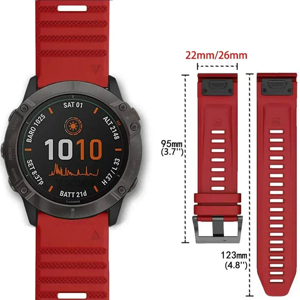 Upgrade your Garmin with this premium QuickFit silicone strap, engineered for quick attachment and rugged durability.