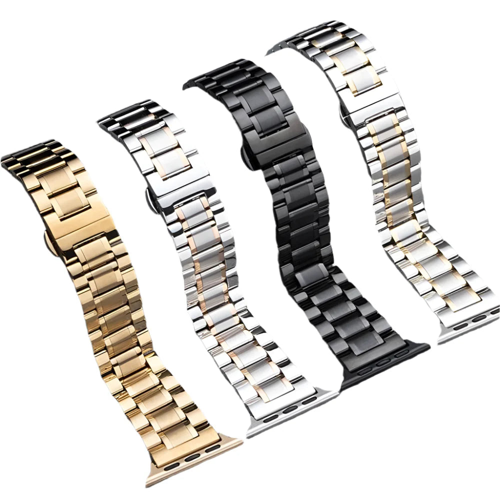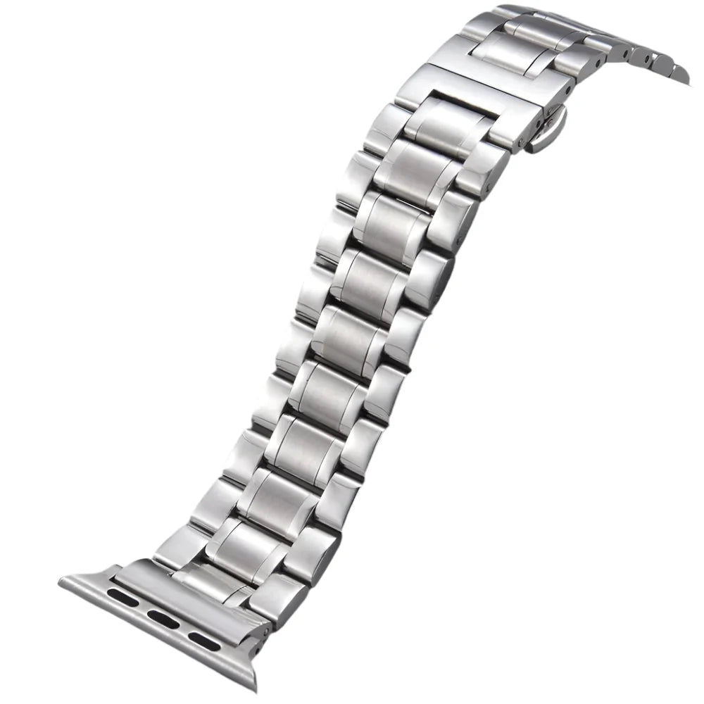 Upgrade your Apple Watch with this polished stainless-steel strap – designed for comfort, longevity, and style.