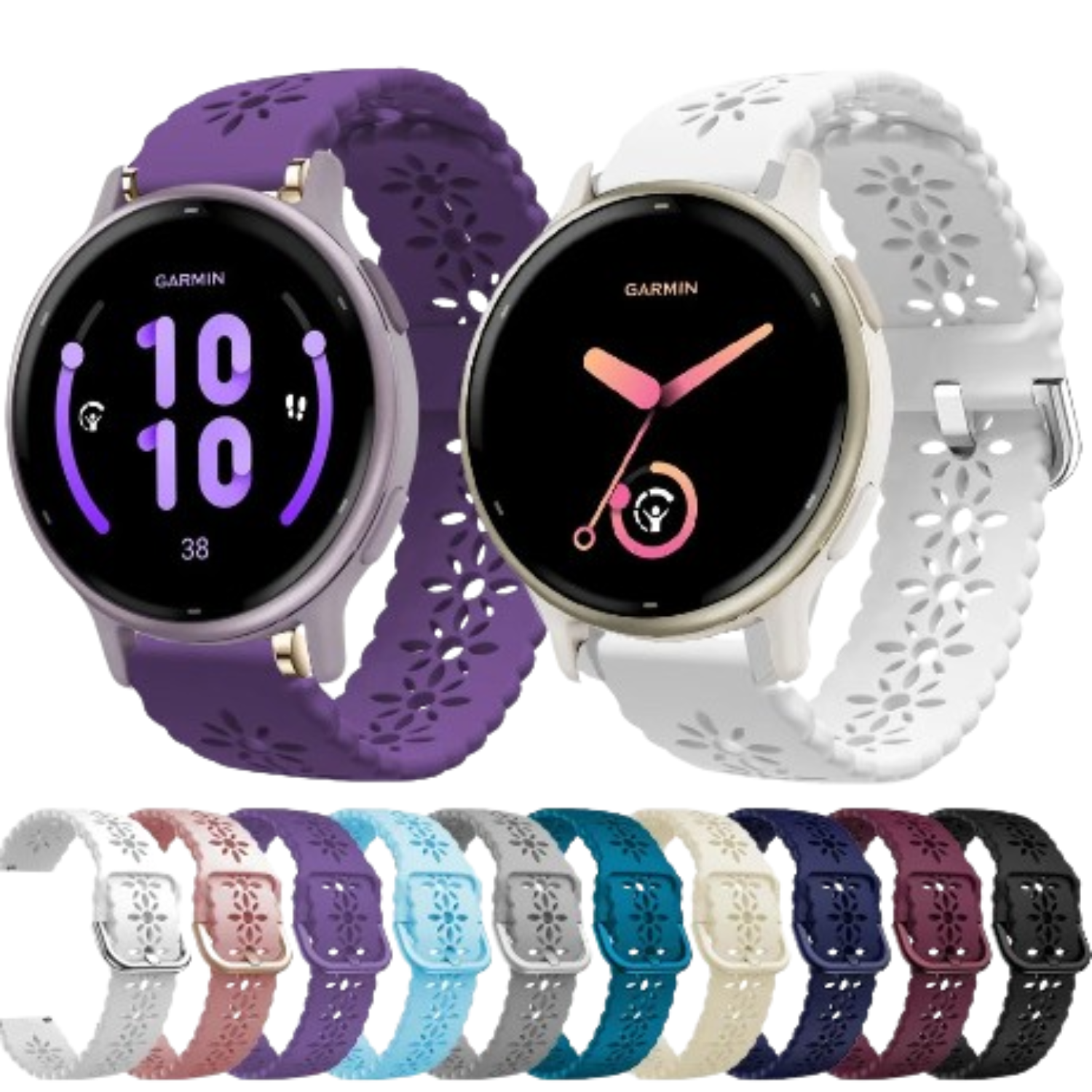 Compatible with a wide range of Garmin models, this strap is sweat-resistant, flexible, and features a secure metal clasp for added peace of mind during workouts or everyday use.